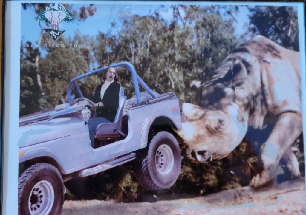 Snapshot of me being “attacked” by a Rhino (San Diego Zoo)